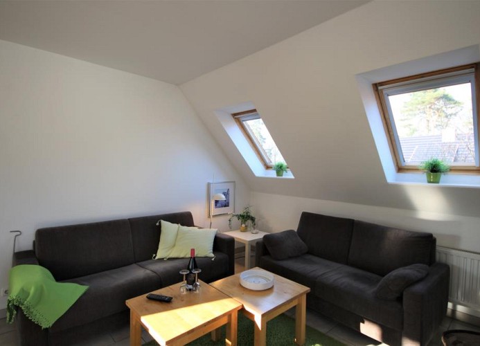 Die stilvolle Ferienwohnung mit circa 50m² bietet Platz für 2-3 Personen. Die Wohnung verfügt über einen offenen Wohnbereich mit komplett ausgestatteter Küche die ideal für Kochabende ist. Die Couch (Schlafcouch) lädt zum Verweilen ein. Außerdem befindet sich in der Wohnung ein gemütliches Doppelbettzimmer. Das Badezimmer ist mit einer Dusche und WC ausgestattet.
